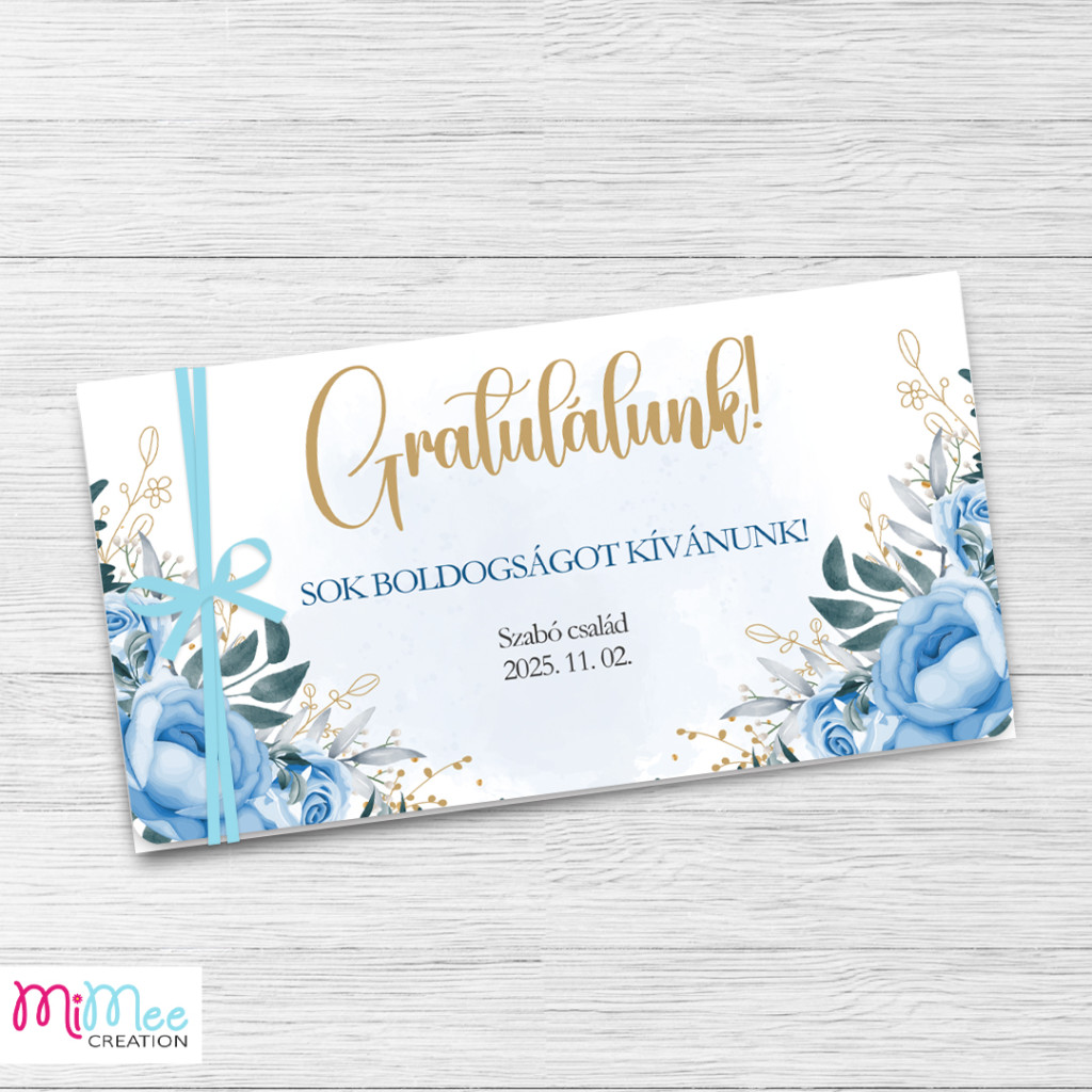 Az ajándékozás pillanata különleges – és megérdemli, hogy a csomagolás is az legyen. Ez az elegáns, kék virág mintás pénzátadó boríték finom, romantikus hangulatot áraszt, így tökéletes választás esküvőre, nászajándékhoz, ballagásra vagy bármilyen jeles alkalomra.
