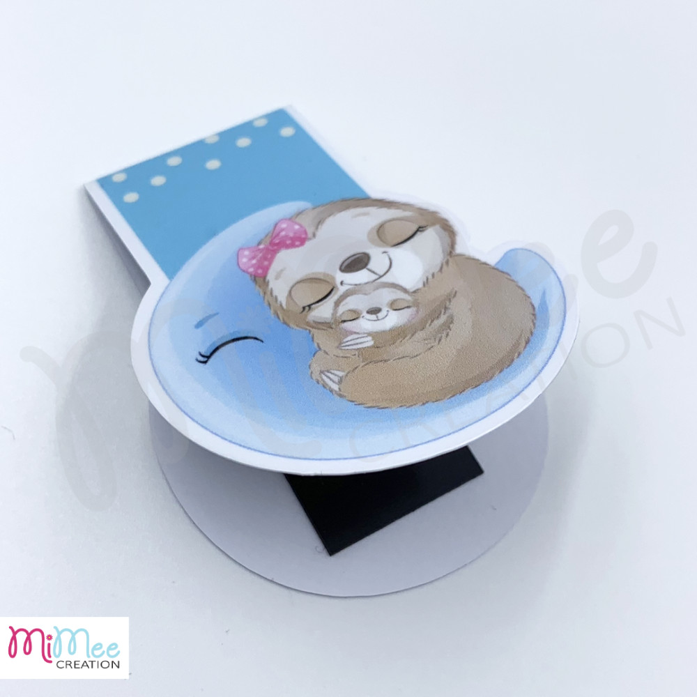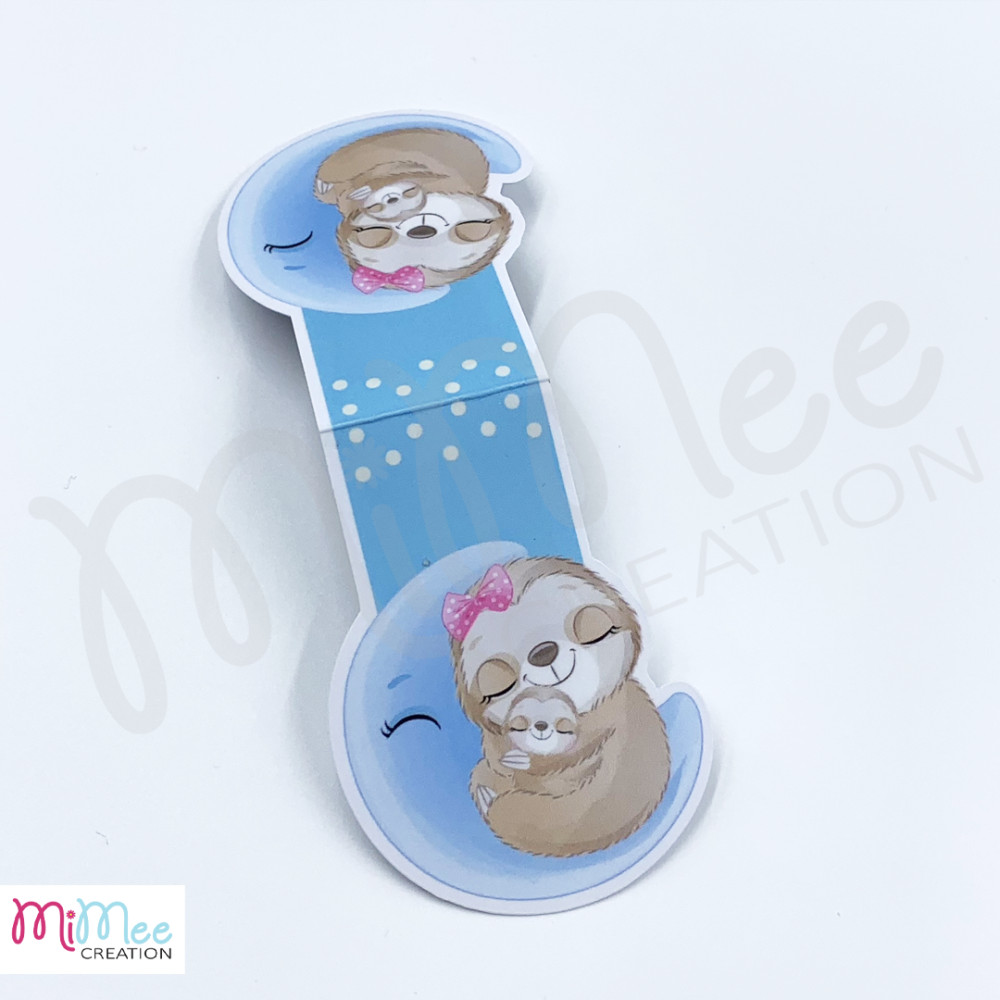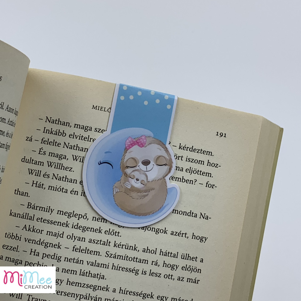 Lajhár mama kicsinyével a holdon - mágneses könyvjelző pöttyös alappal