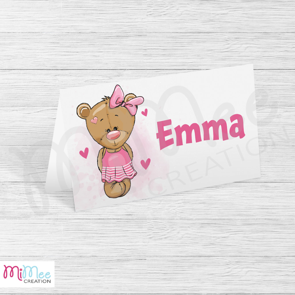 Tedd még varázslatosabbá és bensőségesebbé az ünnepi pillanatokat ezekkel az egyedi, névre szóló ültetőkártyákkal! A bájos, rózsaszín árnyalatokba öltöztetett macis grafika nemcsak helyet jelöl az asztalnál, hanem egy kedves, szívhez szóló hangulatot is teremt. A finom részletek és a puha, lányos színvilág tökéletes választás babaváróhoz, keresztelőhöz vagy egy első születésnapi ünnepséghez.