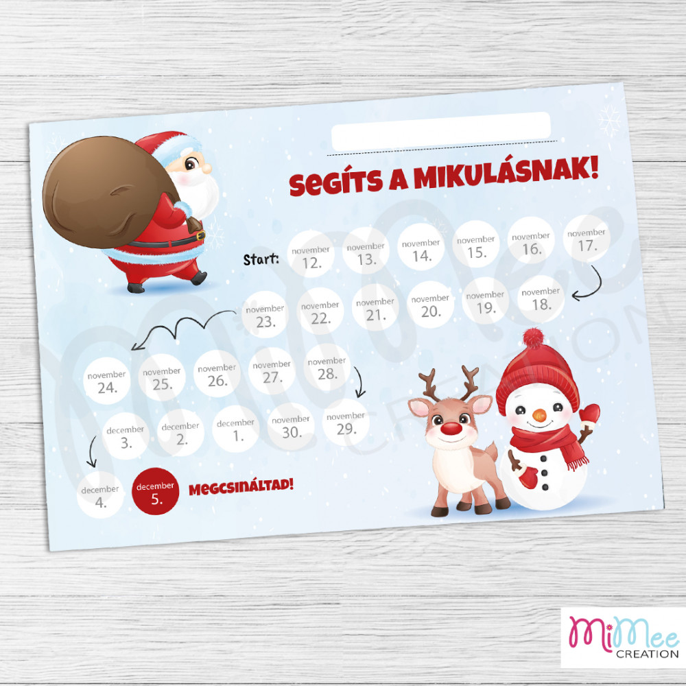 A Mikulás érkezése előtt 24 nappal kezdjétek el használni ezt a naptárat, ami ösztönző táblának is kiváló lehet. Segítsetek eljutni Mikulásnak a barátaihoz, hogy december 5-én este útnak indulhassanak a gyerekekhez szétosztani a sok-sok ajándékot.