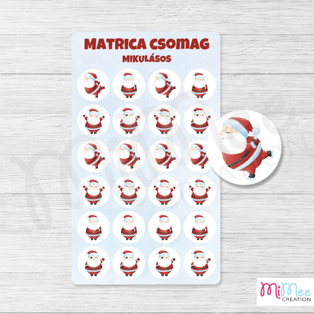 A tábla alapja 300g-os, matt fehér A/4-es papírra van kinyomtatva és a megfelelelő helyekre ragaszthatóak a hozzá járó Télapós matricák.